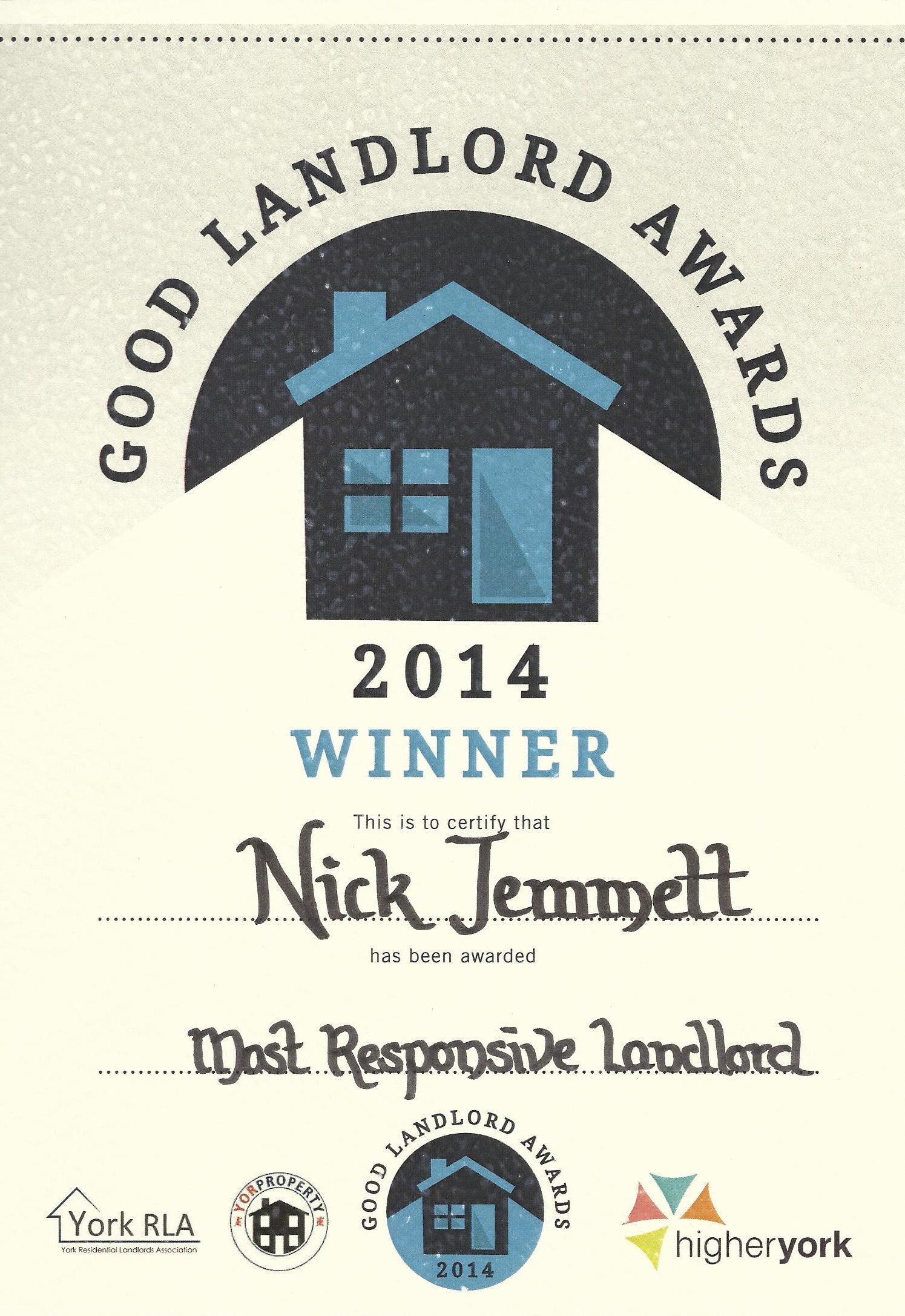 Student Housing in York has been awarded a Good Landord Award for Most Responsive Landlord.